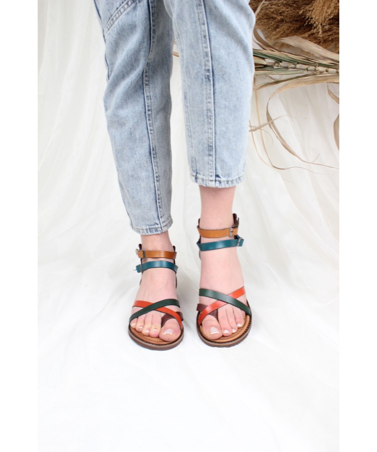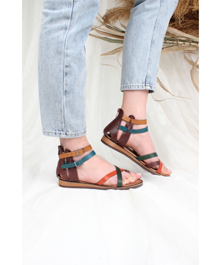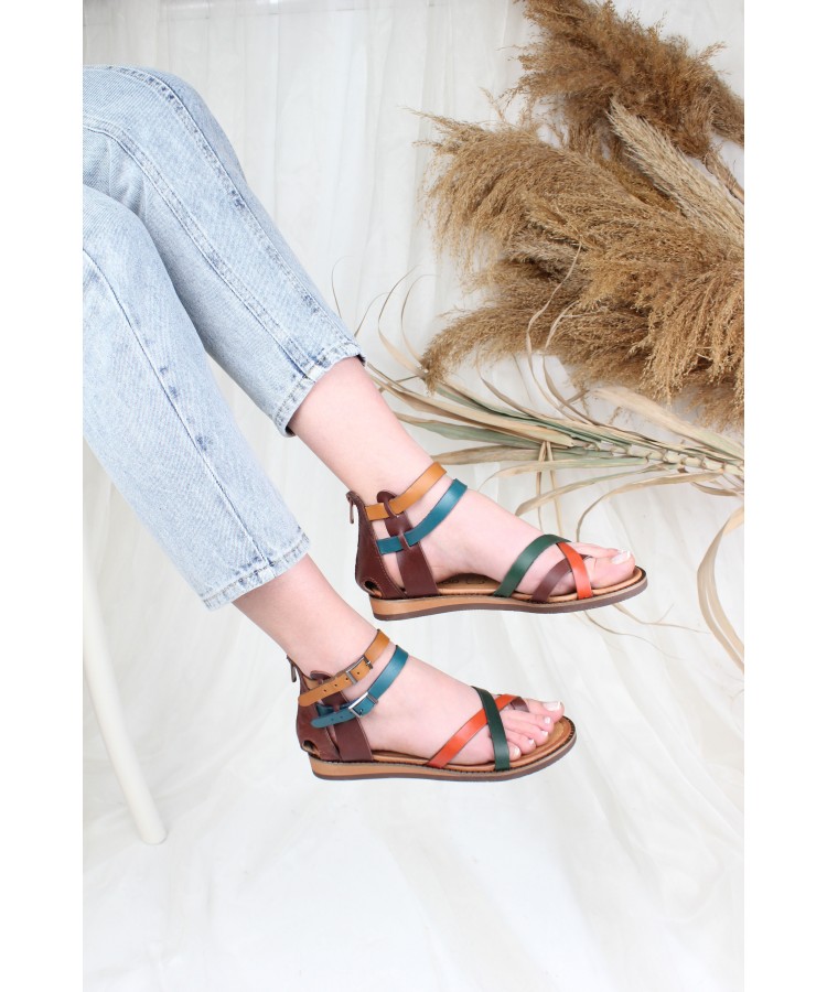 Ülkü Yaman Collection Hakiki Deri Günlük Kadın Sandalet Yeni Sezon Multi Renk
